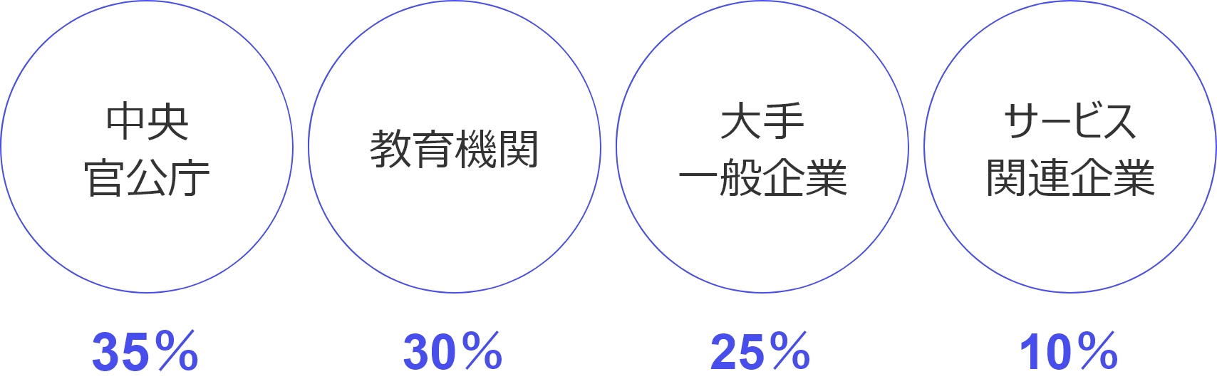 主なお客様は、中央官公庁や大手企業・大学等で、多くが弊社と直接の取引を行っています。